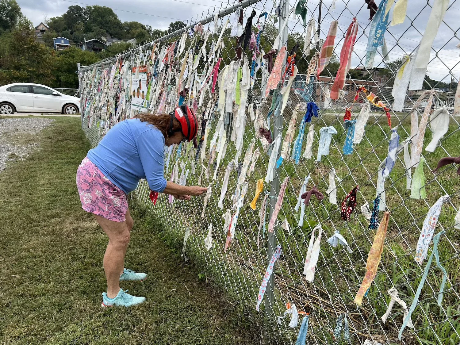 Launch Event: The project began during the Community Gathering of Grief & Joy in Asheville’s River Arts District, where community members tied strips of fabric onto a chain-link fence.