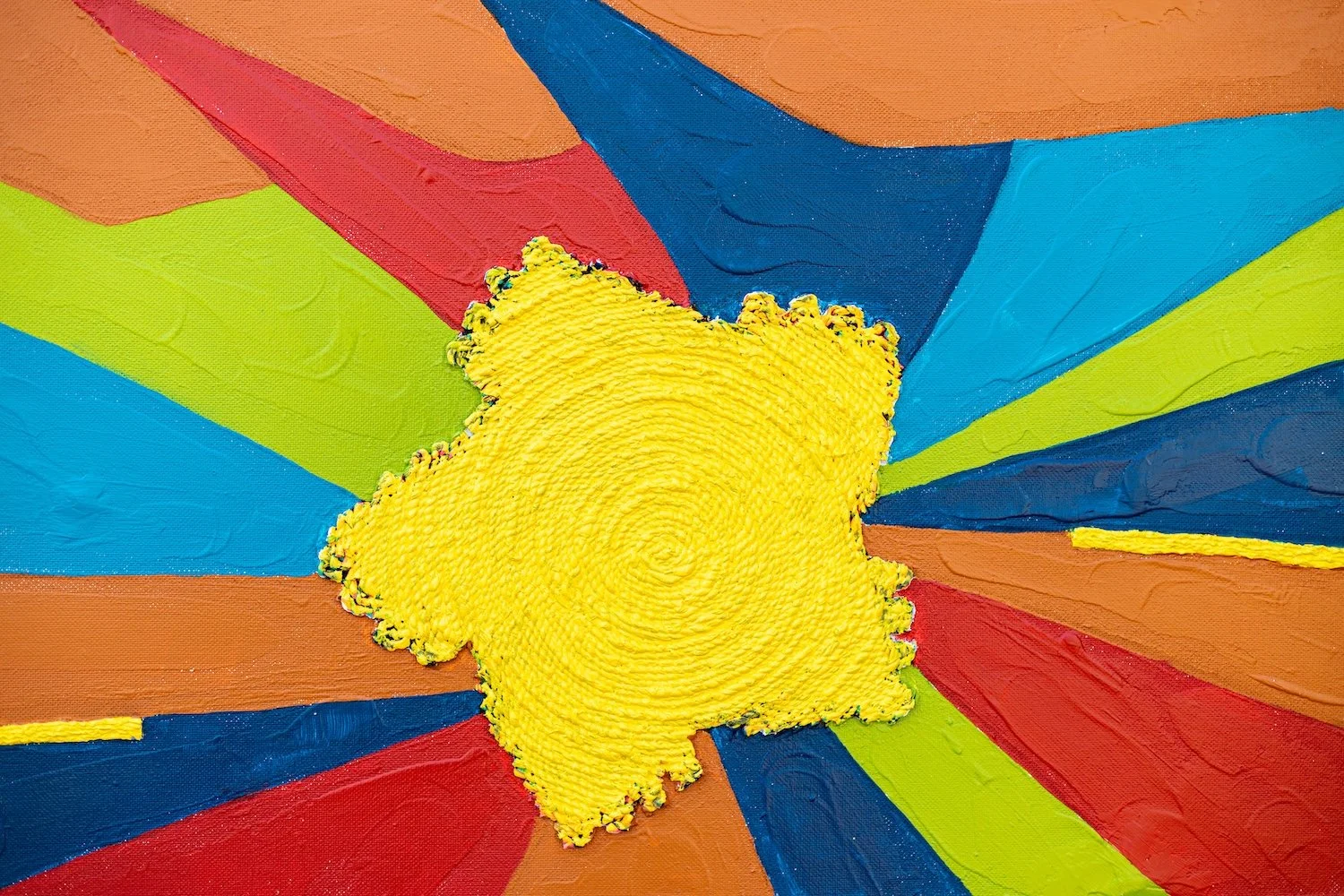 Medium: Hand-twisted fabric cordage on masonite, exterior latex paint